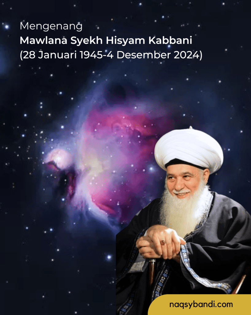 Pada hari Rabu, 4 Desember 2024 Mawlana Syekh Hisyam (q) meninggalkan dunia yang fana ini menuju al-Rafiiq al-Alaa, Persahabatan Tertinggi AllahAzza wa Jalla dan Rasul-Nya (saw). Semoga Allah senantiasa melimpahkan rahmat dan berkah-Nya kepada Mawlana Syekh Nazim (q) dan Mawlana Syekh Hisyam (q) dan mengangkat derajat beliau setinggi-tingginya di Surga, bi hurmatil habib, bi hurmatil Fatihah.